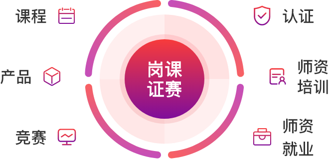 结合自身在产业领域积累的大量技术研发、产品应用和落地经验,把握产业需求与毕业标准两道关卡,提供“岗课证赛”全融通的特色解决方案,与合作伙伴共建融合互补的教育生态圈。